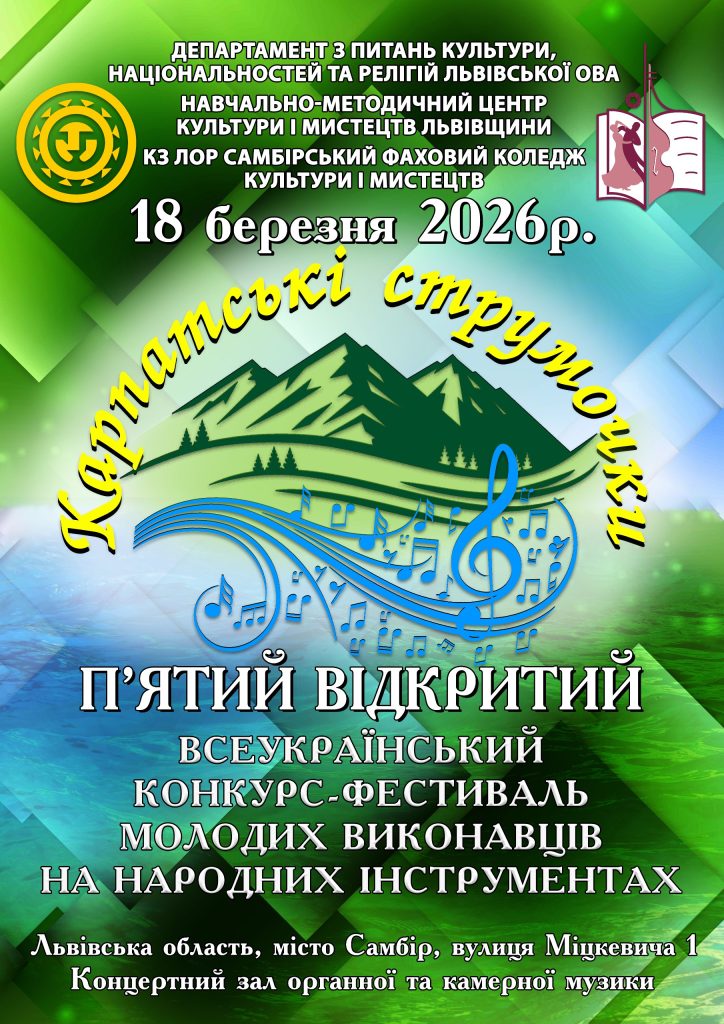 • ВІДКРИТИЙ ВСЕУКРАЇНСЬКИЙ КОНКУРС-ФЕСТИВАЛЬ МОЛОДИХ ВИКОНАВЦІВ НА НАРОДНИХ ІНСТРУМЕНТАХ “КАРПАТСЬКІ СТРУМОЧКИ”