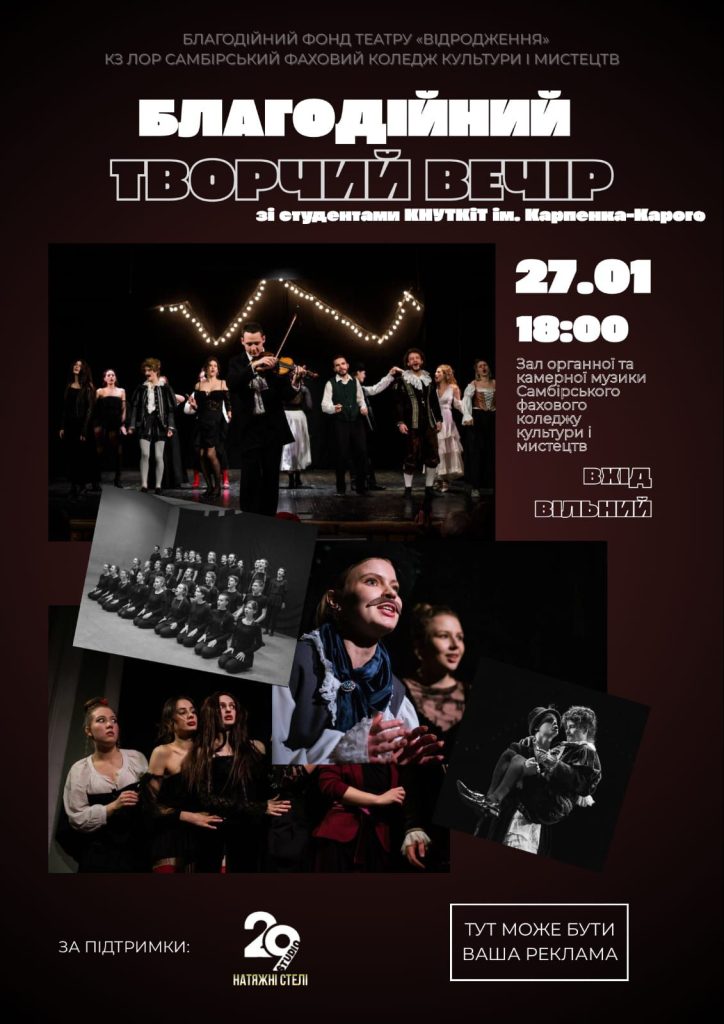 Вхід вільний, адже вечір має благодійну мету — кожна ваша присутність уже є підтримкою доброї справи.